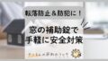暮らしの工夫 窓の補助錠は意味ない?転落・防犯対策に効果的な我が家の使い方 窓の補助錠で、子どもの転落防止&防犯対策!インフルエンザ時の異常行動に対する備えにも。子育て中の我が家で実践している手軽な安全対策について解説。 2025.11.16 2025.11.19 暮らしの工夫